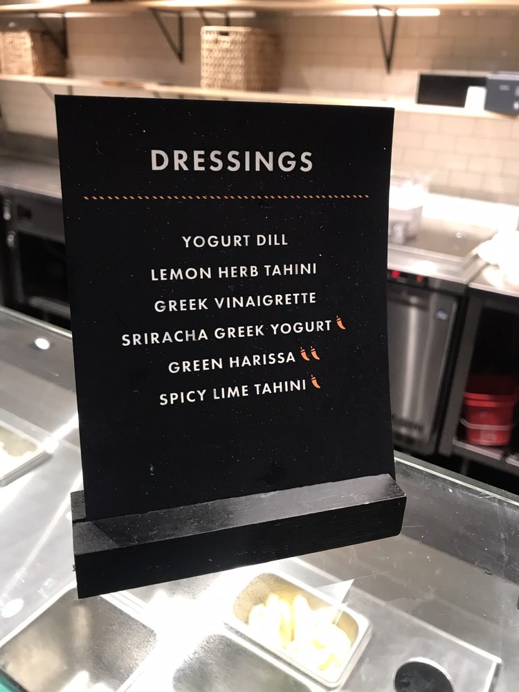 Grilled chicken, brown rice, tzatziki, hummus, feta, pickled onion, tomato, arugula, Greek vinaigrette, and more.